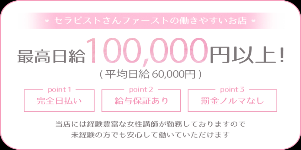 他店の歩合制に換算すると60%~70%バックになります。 これが、当店が稼げる証拠です。